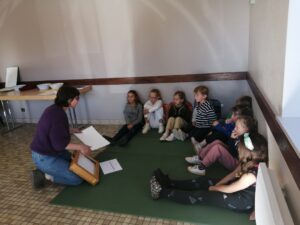 L’objectif de la séance était de permettre aux enfants d’illustrer le conte inventé lors de la 1ère séance en septembre, sous la direction de la conteuse Graziella Favorito.