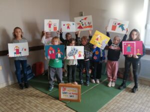 Cette fois-ci les bénévoles Véronique, Renée, Elisabeth, Michel et Marie-Pierre ont pu bénéficier de l’aide indispensable d’une autre professionnelle, l’illustratrice de livres pour enfants Carine Maincent.