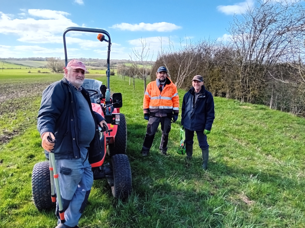 Il restait à finir par le verger communal et ses 25 arbres fruitiers. Gilbert s’est joint à nous durant cette belle après-midi de printemps. Un bon moment convivial !